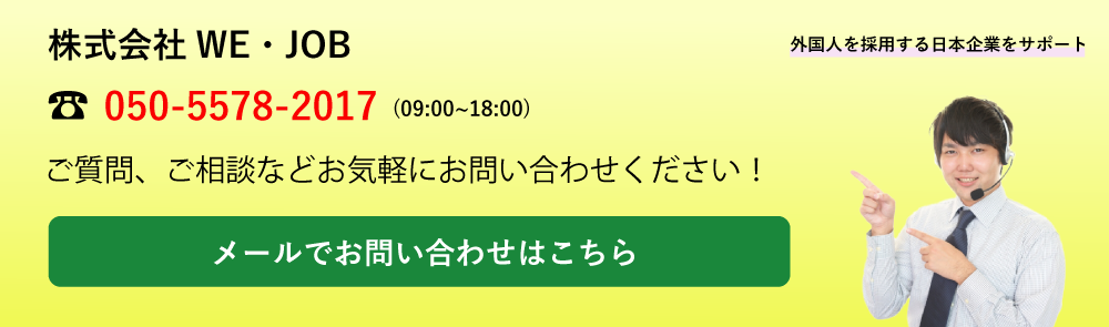 WE・JOBでは、外国人材紹介企業や、特定技能外国人のビザ申請などに関する手続きでお困りなら、