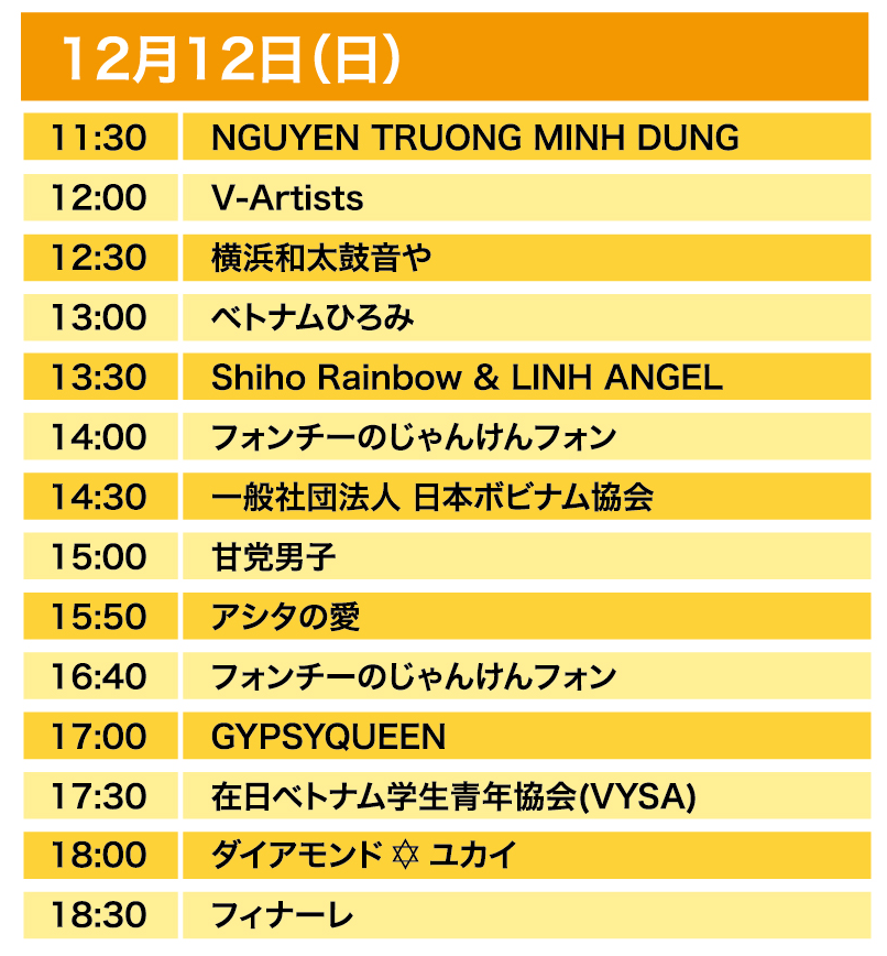 来週末、2021年12月11日・12日に上野恩賜公園 竹の台広場にて開催のベトナムフェスティバル2021、ステージプログラムを決定しました。
